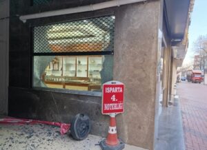 ISPARTA’DA GECE SAATLERİNDE BİR KUYUMCU DÜKKÂNININ KEPENKLERİNİ KESİP CAMINI KIRMAYA ÇALIŞAN İKİ SOYGUNCU, CAMIN KIRILMAMASI ÜZERİNE PLANLARINI GERÇEKLEŞTİREMEYEREK OLAY YERİNDEN KAÇTI.