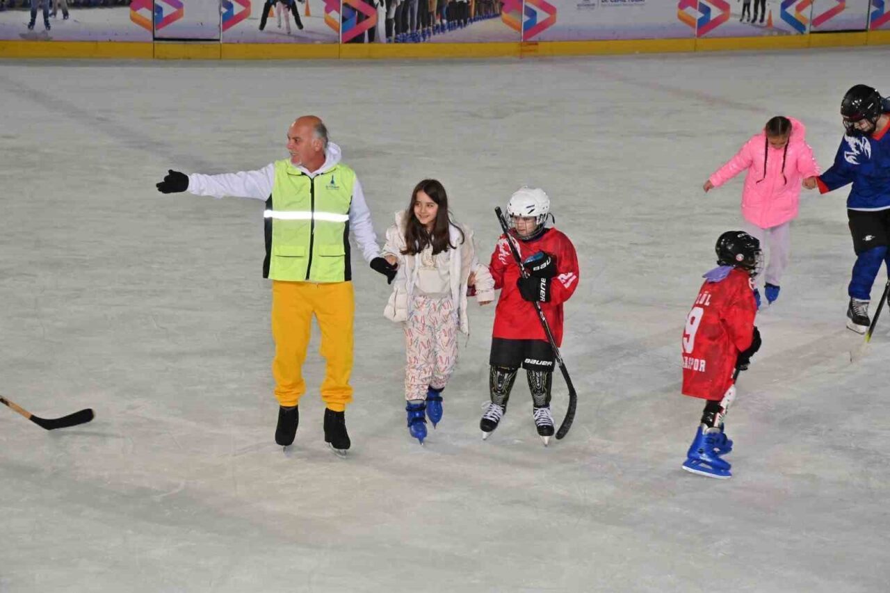 Manisa Büyükşehir Belediyesi Sosyal Hizmetler Daire Başkanlığı Sosyal Projeler Gençlik Spor Şube Müdürlüğünün ev sahipliğinde organize edilen etkinliğe Yunusemre Belediyesi ile Şehzadeler Belediyesi personelleri ve mahalle muhtarları da katılım gösterdi. Büyükşehir Belediyesi’ne ait araçlarla alınan çocuklar, İzmir’deki Aşık Veysel Buz Pisti’ne giderek eğlenceli ve unutulmaz dakikalar geçirdi. İlk kez buz pistine çıkan 150 çocuğa, uzman antrenörler eşliğinde temel ve teorik eğitim verildi. Çocuklar hem spor yapmanın hem de yeni bir aktiviteyi deneyimlemenin keyfini yaşadı. Eğlenceli zaman geçiren çocuklar, Manisa Büyükşehir Belediyesi Başkanı Ferdi Zeyrek’e teşekkür etti. Etkinlik dönüşünde çocuklara, Büyükşehir Belediyesi tarafından özel hazırlanan ve içerisinde kırtasiye malzemeleri olan çantalar hediye edildi.
