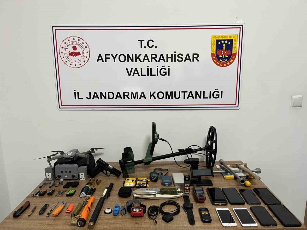 Afyonkarahisar’da dron ile kendilerince güvenlik önlemi alarak kaçak kazı yapan 7 kişi jandarma tarafından yakalandı.