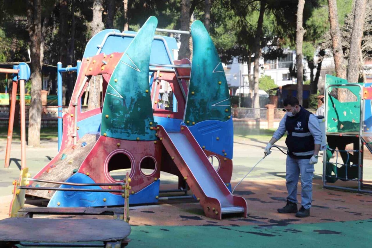 Nazilli Belediyesi oyun alanlarını dezenfekte ediyor