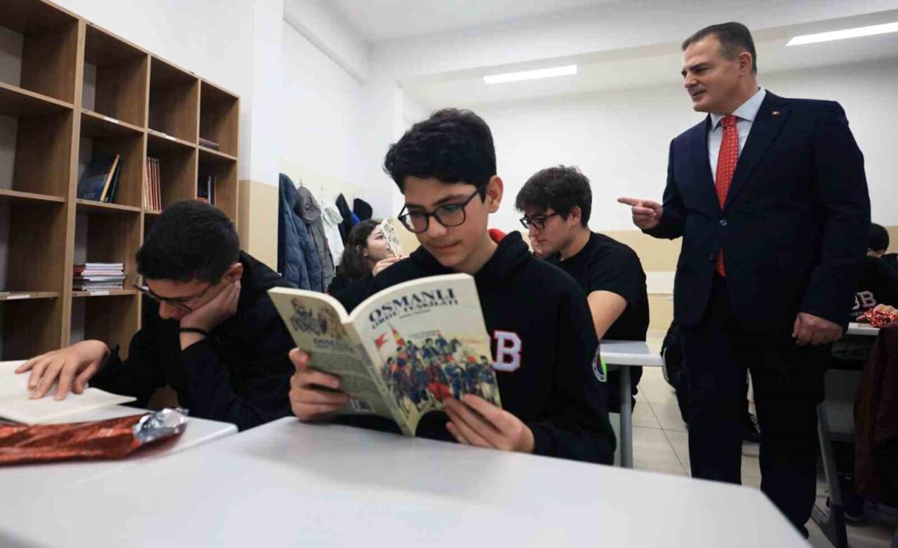 Türkiye Odalar ve Borsalar Birliği Fen Lisesi 9/C sınıfında “Bir Kitap, Bir İnsan” konulu derse katılan Vali Dr. İdris Akbıyık, öğrencilere kitap okumanın öneminden bahsetti.