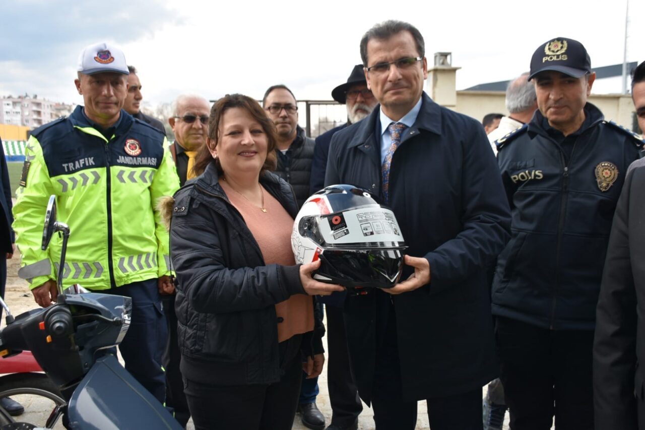 Motosiklet sürücülerine kasklar ise İlçe Kaymakamı Ali Güldoğan, Belediye Başkanı Mazlum Nurlu, İlçe Emniyet Müdürü Burhan Demirkıran, İlçe Jandarma Komutanı Binbaşı Doğukan Karaaslan, İlçe Milli Eğitim Müdürü Mahmut Yenen, Şoförler ve Otomobilciler Esnaf Odası Başkanı Samet Balgönül tarafından teslim edildi.