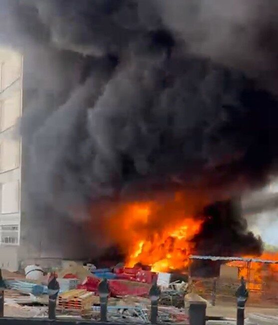 İzmir’de inşaat halindeki okulun bahçesinde yangın