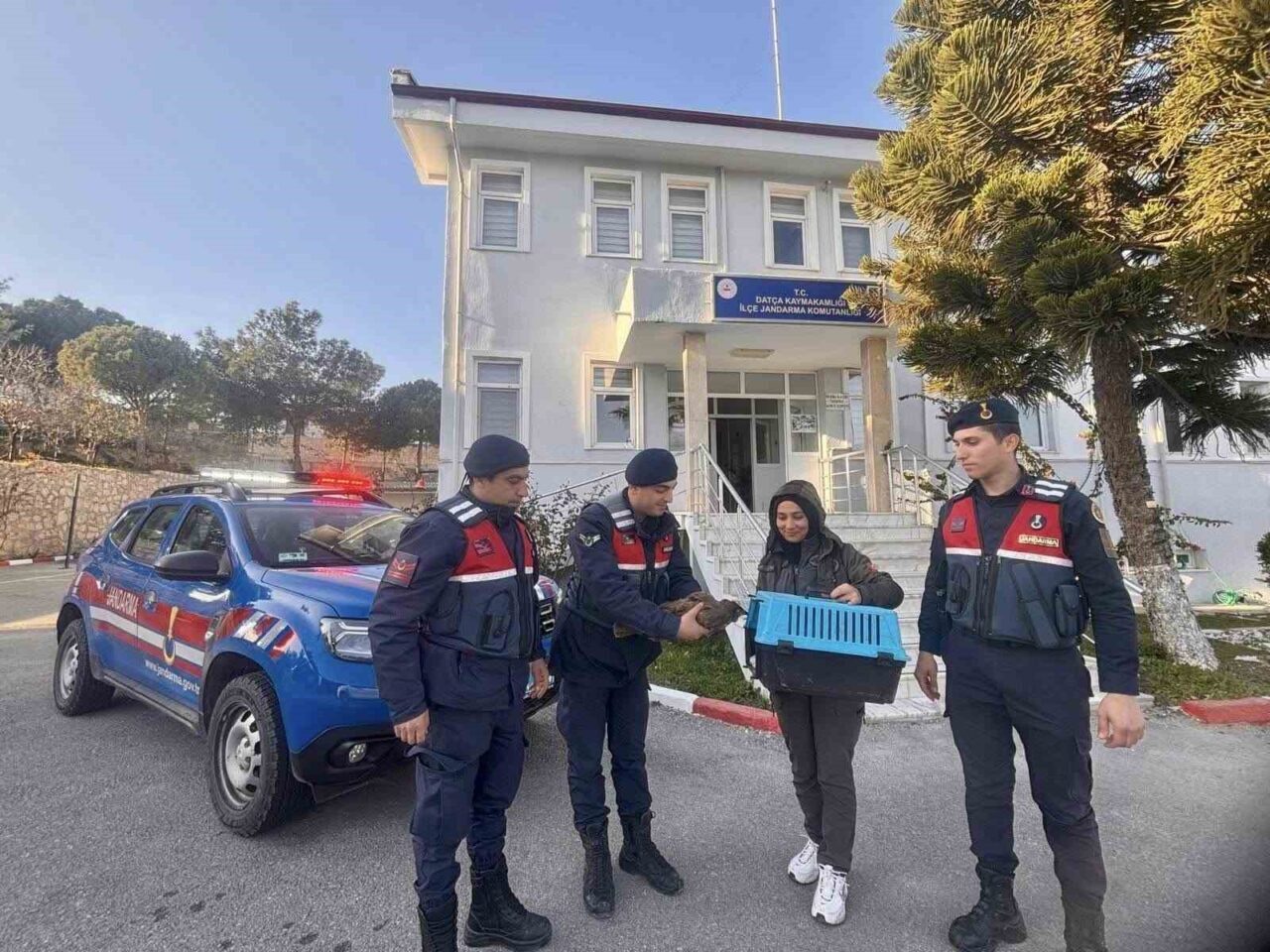 Muğla’nın Datça ilçesinde jandarma ekipleri doğada yaralı halde bulduğu şahini koruma altına aldı.