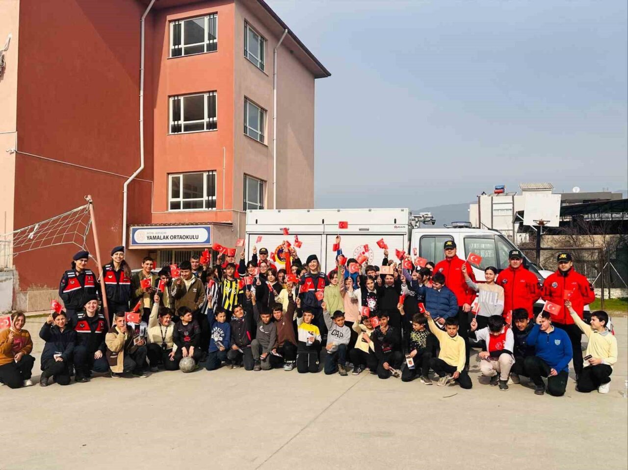 Aydın İl Jandarma Komutanlığı Aile İçi Şiddetle Mücadele ve Çocuk Kısım Amirliği, JAK Tim Komutanlığı ve Kuyucak İlçe Jandarma Komutanlığınca Kuyucak ilçesi Yamalak İlk ve Ortaokulu’nda eğitim gören öğrenciler ve öğretmenlere yönelik bilgilendirme faaliyeti gerçekleştirildi. 2024-2025 Eğitim Öğretim döneminin ikinci yarısının başlaması sebebiyle çocukların suça sürüklenmesini yada suç mağduru olmalarını önlemek maksadıyla ‘Suçtan Korunma ve Kişisel Güvenlik’ konularında bilgilendirme yapıldı. Ayrıca etkinlikte öğrencilere deprem farkındalık eğitimi verildi. Eğitimde depremin tanımı, alınacak tedbirler, deprem çantası hazırlama, Jandarma Arama Kurtarma (JAK) Timlerinin faaliyet konularında bilgilendirmeler yapıldı. Bilgilendirme faaliyetinin sonunda tüm öğrenci ve öğretmenlerle birlikte deprem tatbikatı yapılırken, çocuklara faaliyet sonunda Türk bayrağı dağıtıldı.