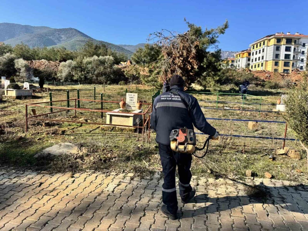 Karacasu Belediyesi ilçe genelindeki mezarlıklarda temizlik çalışması başlattı.