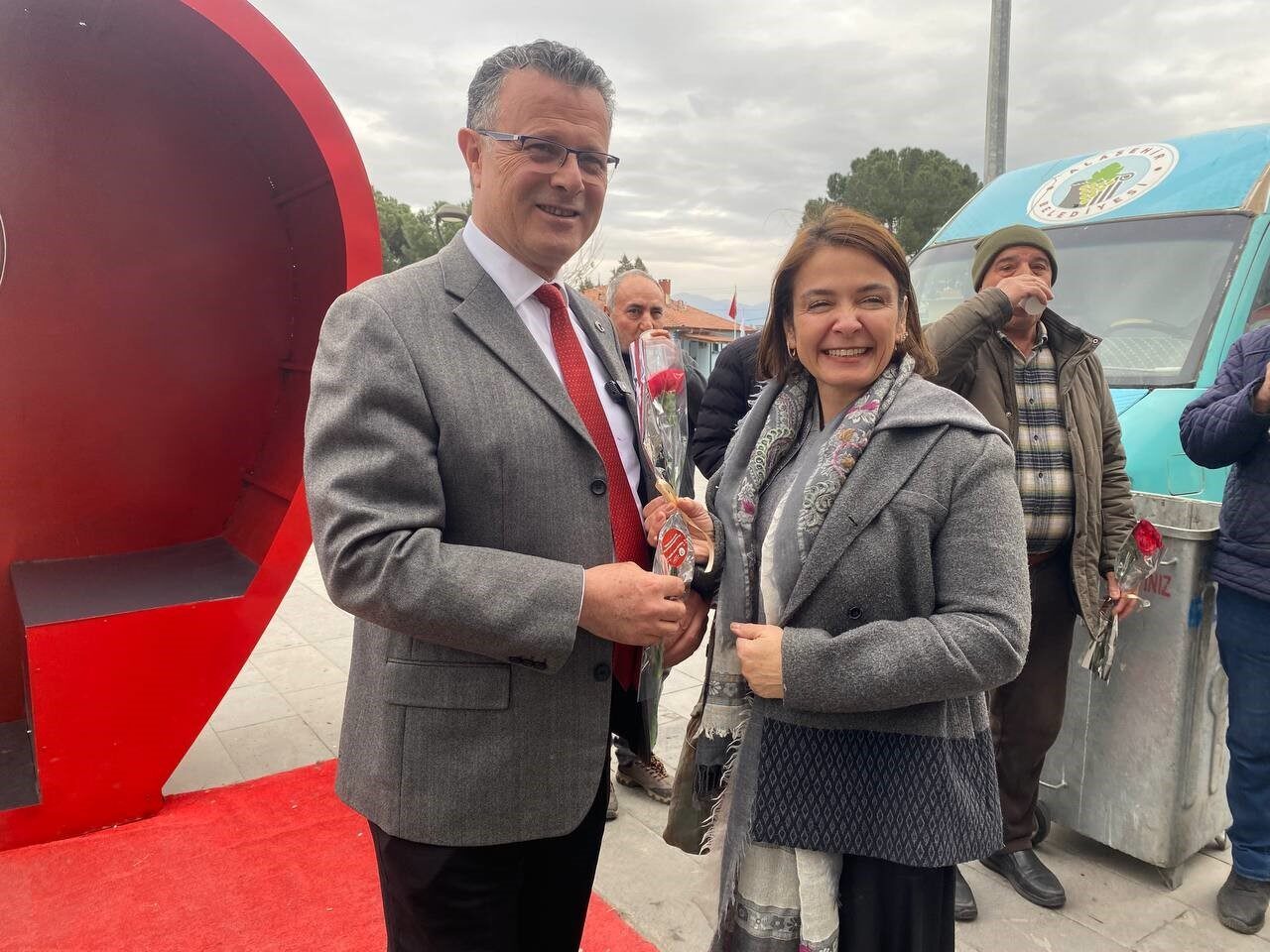 Manisa’nın Alaşehir ilçesinde 14 Şubat Sevgililer Günü dolayısıyla belediye tarafından çeşitli etkinlikler düzenlendi. Belediye Başkanı Ahmet Öküzcüoğlu vatandaşlara karanfil dağıtırken, ilk çiçeği eşi Selen Öküzcüoğlu’na takdim etti.
