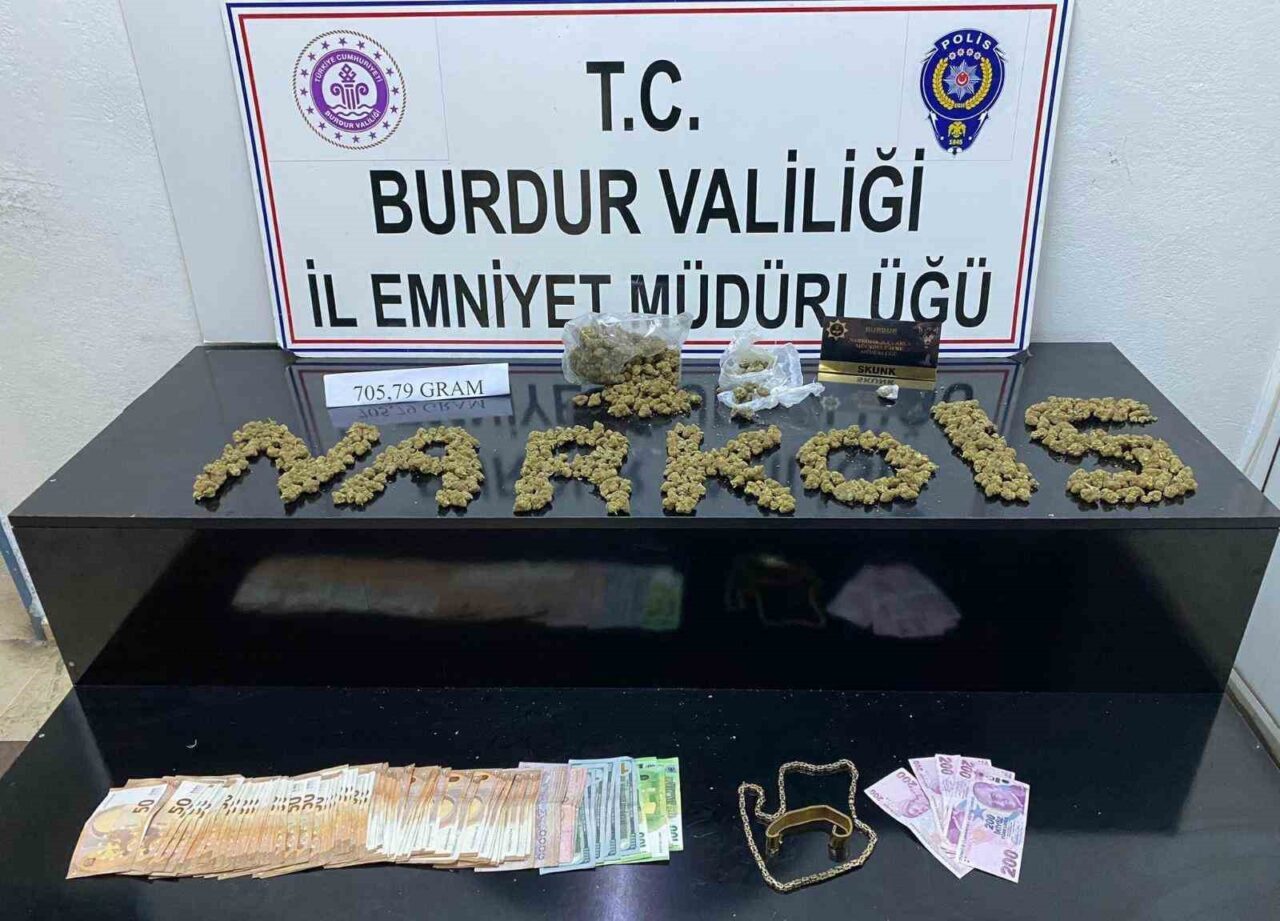 İl Emniyet Müdürlüğü ekiplerince 9 Şubat’ta kent merkezinde durdurulan araçta üzerinden uyuşturucu çıkan araç sürücüsü S.Y. gözaltına alındı. Emniyetteki işlemlerinin ardından adliyeye sevk edilen şahıs tutuklanarak cezaevine gönderildi. Öte yandan araçta ve şüphelinin ikametinde yapılan aramada; 705,79 gram skunk, bin 200 TL, 4 bin 840 Tayland bahtı, 4 bin euro, 600 dolar, 10 pound ve 220,95 gram altın ele geçirildi.