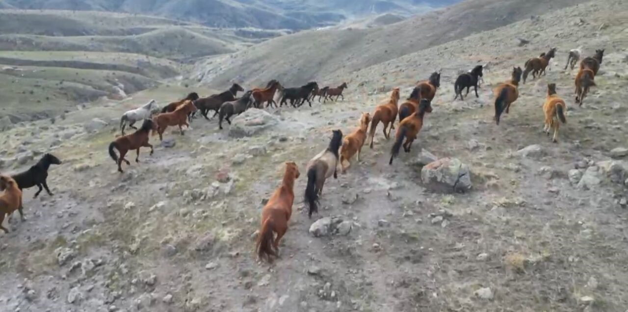 Sevimlilikleri ile birlikte ürkeklikleri ile bilinen yılkı atları bu defa yiyecek ararken görüntülendi. Hava sıcaklıklarının eksi 10 derecelere kadar düştüğü Emirdağ ilçesine bağlı Yellibel yaylasında yiyecek aramak için köylere kadar inen yılkı atları dron ile havadan görüntülendi. Sürü halinde dolaştıkları gözlenen atların dronu fark edince kaçmaları ise ilginç bir o kadarda güzel görüntüler oluşturdu.