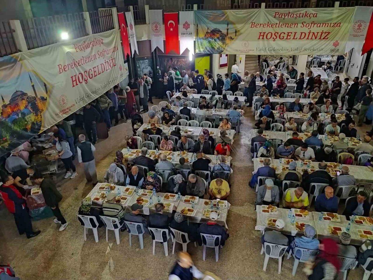 Türkiye’nin 25 farklı bölgesinde faaliyet gösteren Vakıflar Bölge Müdürlükleri, mübarek Ramazan ayı boyunca birçok noktada vatandaşlara ücretsiz iftar yemeği sunacak. İzmir Vakıflar Bölge Müdürlüğü tarafından geçen yıl Ramazan ayında olduğu gibi bu yıl Ramazan ayında da Şehzadeler Namazgah Vakıf İş Hanı’nda her gün 300 kişilik iftar sofrası kurulacak. Ayrıca İzmir Vakıflar Bölge Müdürlüğünce İzmir Gaziemir Bizim Bahçe Kır Düğün Salonu, İzmir Şehir Hastanesi Acil Servis Önü ve İzmir Konak Hisar Camiinde de iftar sofraları kurulacak.