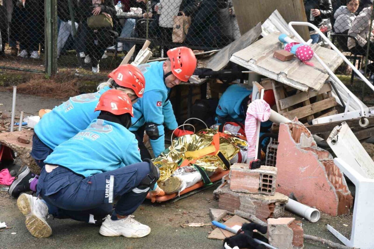 UMKE ekipleri, tatbikat kapsamında sağlık çalışanlarının kriz anlarında nasıl hareket ettiğini ve kurtarma sürecini görsel olarak ortaya koydu. Gerçeğini aratmayan tatbikat, öğrenciler ve katılımcılar tarafından ilgiyle takip edildi.