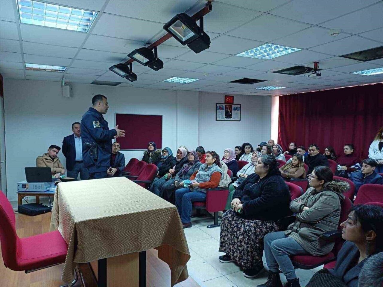 Aydın’ın Nazilli ilçesinde jandarma ve polis ekipleri Güzelköy Özel Eğitim ve İş Eğitimi Merkezi Konferans Salonu’nda düzenlenen etkinlik ile öğrenci velisi ve okul personelini uyuşturucu madde kullanımında alınacak tedbirler konusunda bilgilendirdi.