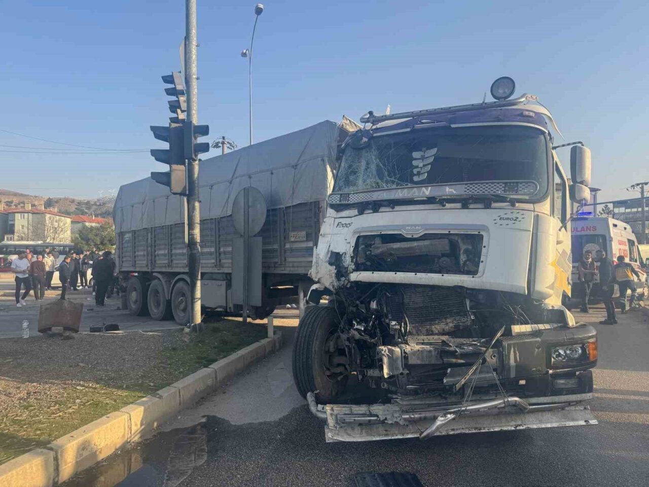 Afyonkarahisar’da tır ile midibüsün çarpıştığı trafik kazasında 4’ü yabancı uyruklu 5 kişi yaralandı.