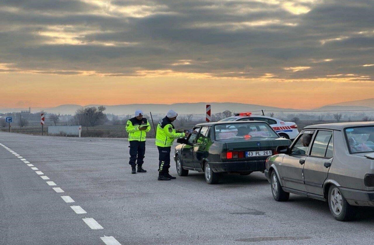 Kütahya’da jandarma trafik ekipleri Tavşanlı-Emet karayolunda 55 sürücüyü yağışlı havalarda, kış şartlarında araç kullanımı ve çeşitli konularda bilgilendirdi.