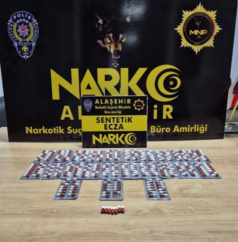 Alaşehir İlçe Emniyet Müdürlüğü Narkotik Suçlarla Mücadele Şube Müdürlüğü Büro Amirliği tarafından yapılan sokak çalışmaları kapsamında Menderes Mahallesinde bir şüpheli şahsın yapılan üst ve ikamet aramasında 287 adet sentetik ecza hapı ele geçirildi. Şüpheli A.D. (22) polisteki ifadesinden sonra çıkarıldığı mahkeme tarafından tutuklandı.
