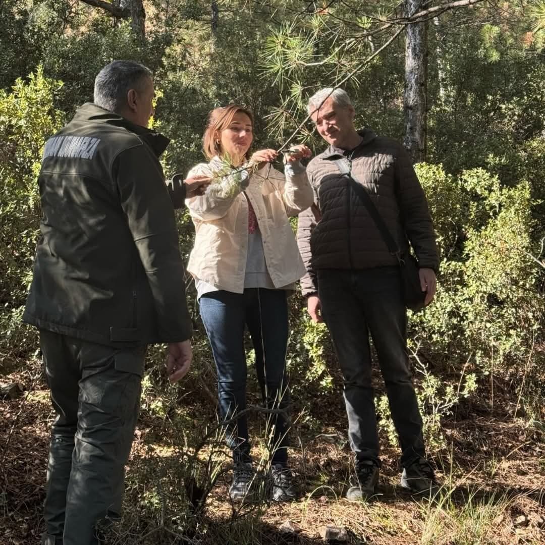 Denizli’de Göveçlik mevkiinde bulunan karaçam ağaçlarında görülen kuruma ve solgunluk belirtileri üzerine, uzman ekipler sahada incelemelerde bulundu. Denizli Orman Bölge Müdürlüğü Orman Zararlılarıyla Mücadele Şube Müdürü İbrahim Karaşahin, Denizli Orman İşletme Müdürü Tamer Uysal, Merkezefendi Orman İşletme Şefi Kemal Fıtlamak ile Pamukkale Üniversitesi Fen Fakültesi Biyoloji Bölümü Doktor Öğretim Üyesi Ceyda Beram ve doktora öğrencisinin yer aldığı ekip, zarar gören ağaçları yerinde inceledi. İlk elde edilen sonuçlar, ağaçlardaki kurumaların temel sebebinin iklim değişikliği ve özellikle kuraklık olduğunu gösteriyor. Kuruyan ve zayıf düşen ağaçların hastalıklara karşı daha savunmasız hale geldiği belirtilirken, muhtemel patojenik mikroorganizmaların etkisi de göz önünde bulundurularak teknik analizler için örnekler alındı.