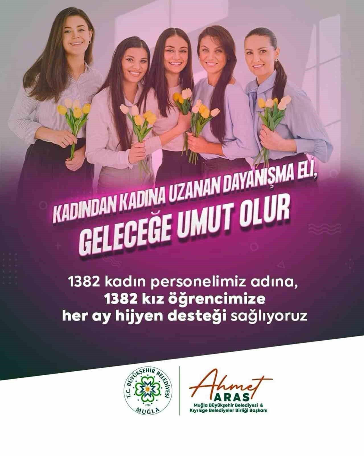 Muğla Büyükşehir Belediyesi, 8 Mart Dünya Kadınlar Gününde sosyal belediyecilik anlayışını güçlendiren örnek bir projeye daha imza attı. Kadınların desteklenmesi ve toplumsal farkındalık oluşturulması amacıyla belediyede çalışan Bin 382 kadın personel adına, Bin 382 kız öğrenciye hijyen desteği sağlanacak.