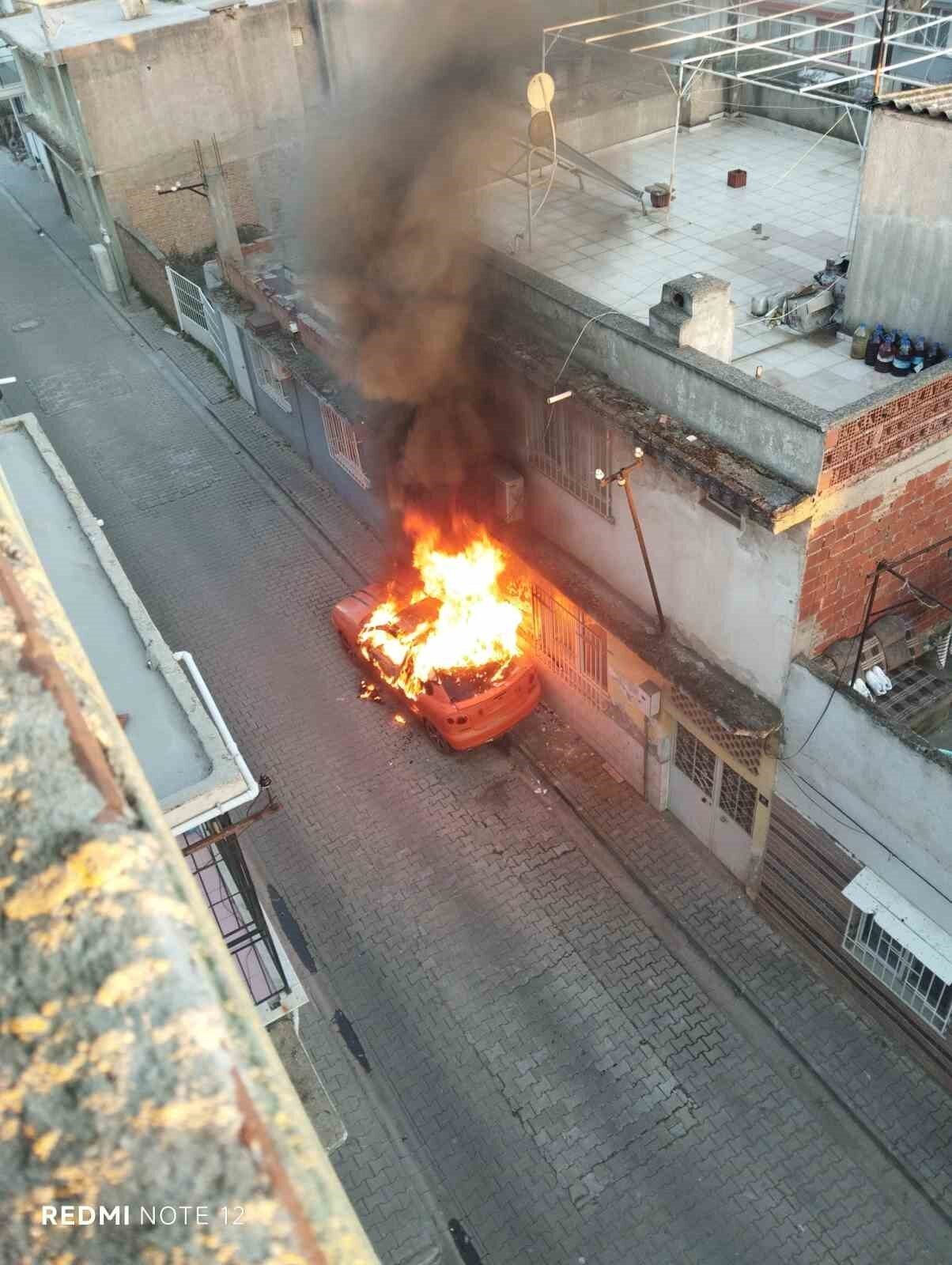 Aydın’ın Efeler ilçesinde park halindeki otomobil alev topuna döndü. Aracın alev alev yandığı anlar cep telefonu kamerası ile kaydedilirken, otomobilden geriye hurda yığını kaldı.