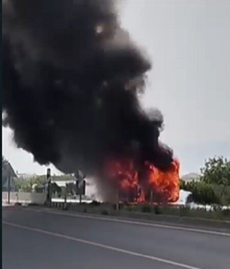 İzmir’in Bayındır ilçesinde toplu ulaşım aracı ESHOT, alevlere teslim oldu. Geçtiğimiz günlerde Bergama’da da bir otobüsün yandığı öğrenilirken, bir hafta içerisinde ikinci kez otobüsün yanması dikkat çekti.