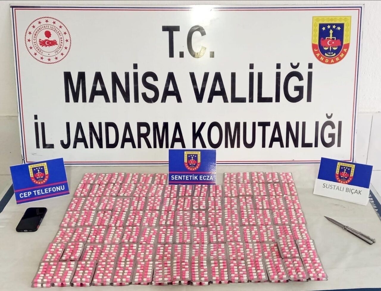 Edinilen bilgilere göre, Manisa İl Jandarma Komutanlığı İstihbarat ve KOM Şube Müdürlüğü ile Soma İlçe Jandarma Komutanlığı ekiplerinin koordineli çalışması sonucu, Y.K. (25) isimli şahsın üzerinde ve ikametinde arama yapıldı. Yapılan aramalarda toplam 2 bin 860 adet sentetik ecza hap, 1 adet bıçak ve 1 adet cep telefonu ele geçirildi.