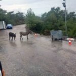 Marmaris-Datça karayolu üzerinde başıboş dolaşan eşekler hem sürücüler hem de hayvanlar için tehlike oluşturuyor. Yol kenarındaki çöp konteynırlarında yiyecek arayan eşekler, trafik akışını aksatırken, kazalara davetiye çıkarıyor.