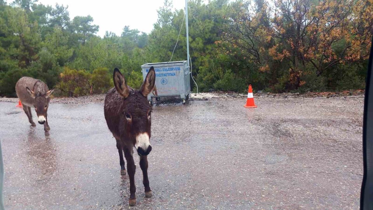 Marmaris-Datça yolunda başıboş eşekler tehlike saçıyor