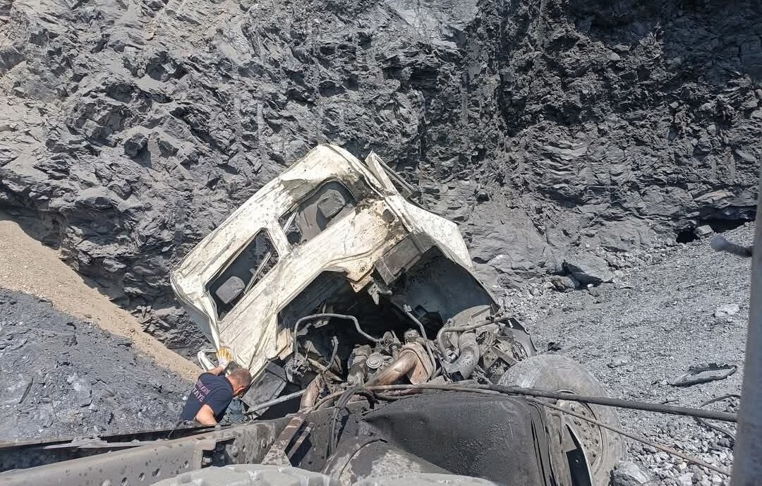 Kütahya’nın Altıntaş ilçesinde bir maden ocağında döküm yaptığı esnada uçuruma yuvarlanan hafriyat kamyonunun sürücüsü hayatını kaybetti.