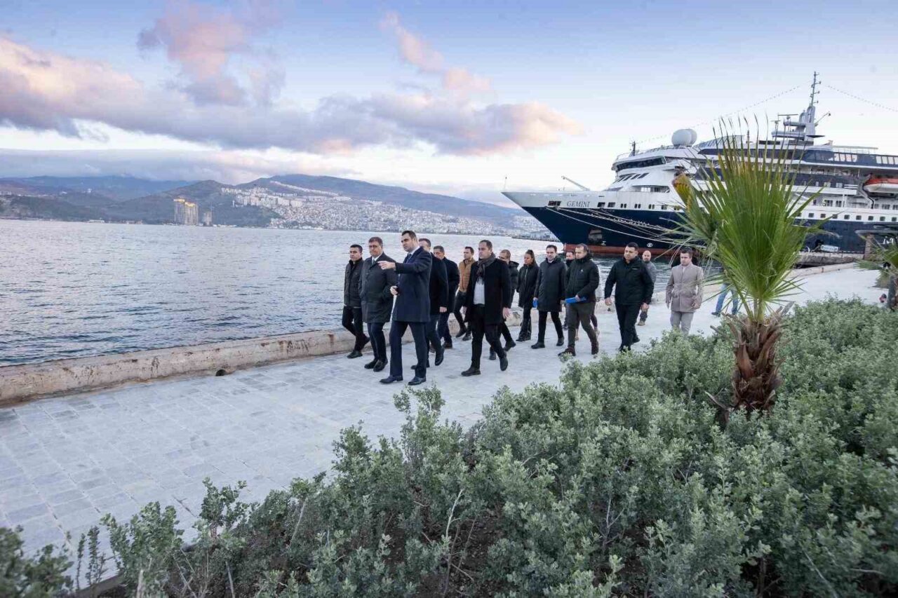 İzmir Büyükşehir Belediye Başkanı Dr. Cemil Tugay, Alsancak Kordon’da deniz taşkınlarını önlemek için başlatılan, aynı zamanda sosyal donatı alanlarıyla kıyı şeridindeki sorunları çözerek estetik bir görünüme kavuşturacak ‘Kordon Acil Eylem Paketi’ çalışmalarını yerinde inceledi. Alsancak Limanı’ndan Cumhuriyet Meydanı’na kadar uzanan çalışma hakkında sahada bilgi alan Başkan Dr. Cemil Tugay’a İzmir Büyükşehir Belediyesi Genel Sekreter Yardımcısı Çağatay Güç, Fen İşleri Dairesi Başkanı Sercan Kahya, Yapı İşleri Dairesi Başkanı Onur Açık, Park ve Bahçeler Dairesi Başkanı Müge Deniz Bal ve birim yöneticileri eşlik etti. Kordon boyunca yürüyen Başkan Tugay, alanda yapımı tamamlanan geçici fırtına duvarını, acil durum kapılarını, zemin ve peyzaj düzenlemelerini teker teker inceledi.