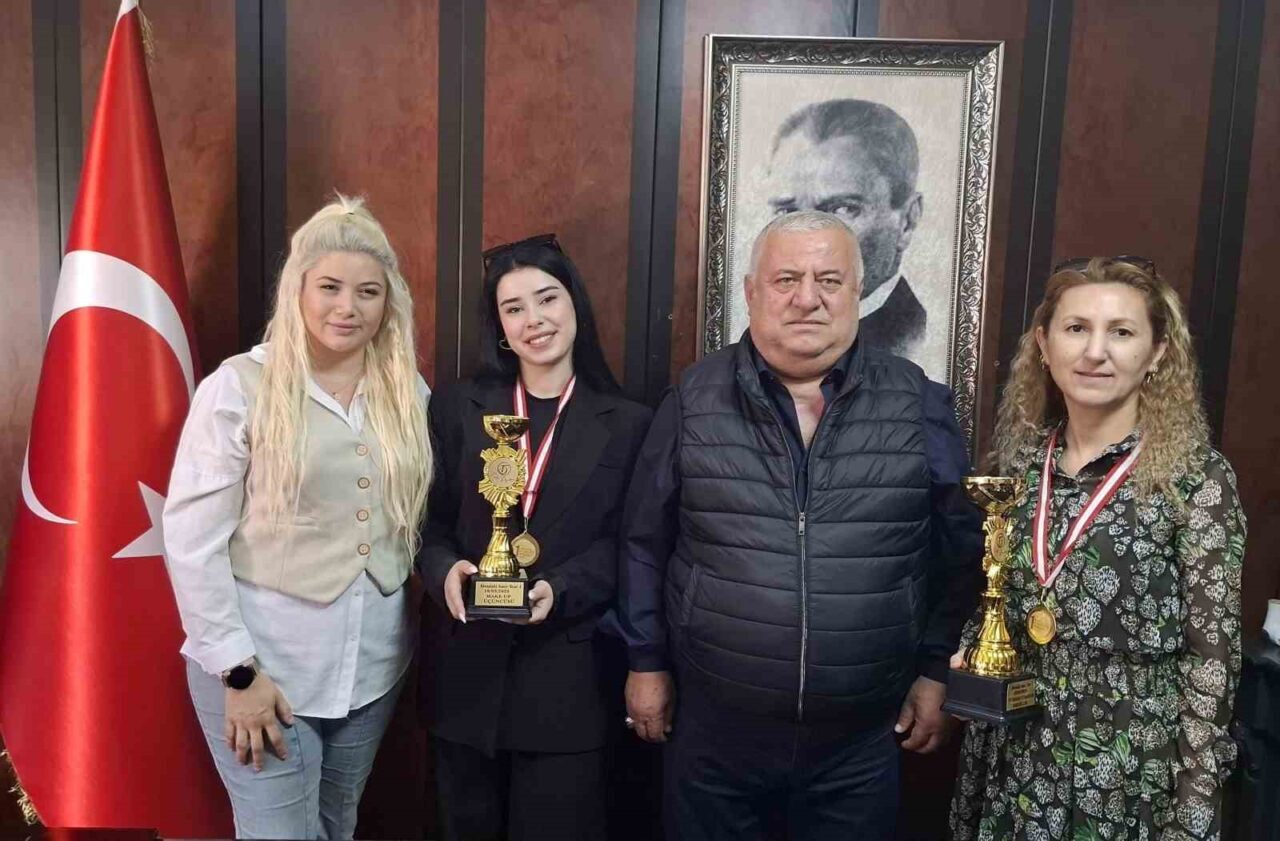 “Denizli’nin Parlayan Yıldızları” yarışmasında türban kategorisi birincisi Nurcan Kösehan ve Makyaj kategorisinde üçüncü olan Sevim Alkış, Denizli Esnaf ve Sanatkarlar Odaları Birliği Başkanı Mehmet Ali Erbeği’ni makamında ziyaret etti. Ziyarete yarışma tertip sorumlusu Feriha Dayıbaşı, DESOB Yönetim Kurulu üyesi Neriman Ceylan Sarısoy ve yarışmacıların aileleri katıldı.