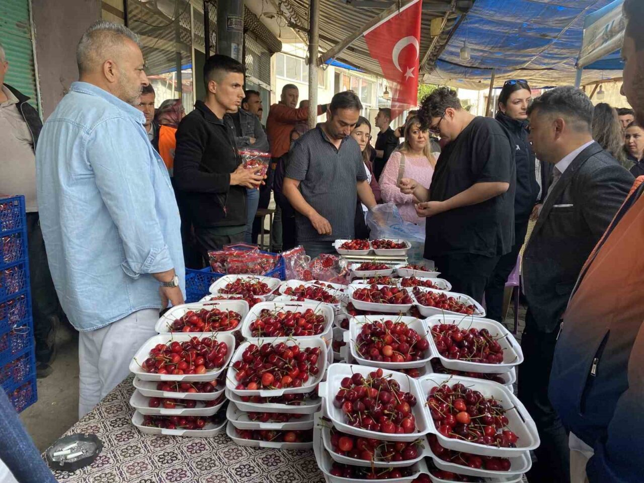 Festival, bando takımı eşliğinde Cumhuriyet Caddesi üzerinden kortej yürüyüşüyle başladı. Cadde boyunca esnaf tarafından kurulan stantlar vatandaşlardan ilgi gördü. Etkinliklerin en dikkat çeken bölümü ise kiraz yeme yarışması oldu. Yarışmaya 2’si kadın toplam 26 kişi katıldı. Yarışmacıların önlerine birer kilogramlık tabaklarda kirazlar konuldu. Kurallara göre sadece su içilmesine izin verilen yarışmada katılımcılar, 10 dakika içinde en fazla kirazı yemek için kıyasıya mücadele etti. Yarışmanın sonunda Dursun Gökçen 2 kilo 592 gram kiraz yiyerek birinci olurken, kardeşi Adem Gökçen 2 kilo 554 gramla ikinci oldu. Üçüncülüğü ise 2 kilo 330 gram kiraz tüketen Tugay Okay elde etti. Yarışmayı izleyen vatandaşlar tuttukları yarışmacılara tezahüratlarla destek verdi. Yarışmada dereceye giren isimlere ödül olarak; birinciye yarım altın, ikinciye çeyrek altın, üçüncüye ise gram altın verildi. Kadın yarışmacılara da teşvik amacıyla özel ödüller takdim edildi.