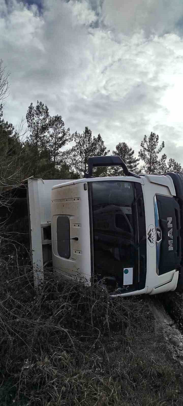 Kaza sabah saatlerinde Burdur’un Gölhisar ilçesi Evciler köyü yolu Gölbaşı mevkiinde meydana geldi. Edinilen bilgilere göre köy yolunda seyir halinde olan sürücüsü ve plakası bilinmeyen hafriyat kamyonu kontrolden çıkarak devrildi. Kazayı görenlerin 112 Acil Çağrı Merkezi’ne ihbarı üzerine olay yerine sağlık, itfaiye ve jandarma ekipleri sevk edildi. Olay yerine gelen itfaiye ekipleri tarafından devrilen araçtan çıkarılan sürücünün kazada yara almadığı öğrenildi. Devrilen kamyon vinç yardımıyla olay yerinden kaldırıldı.