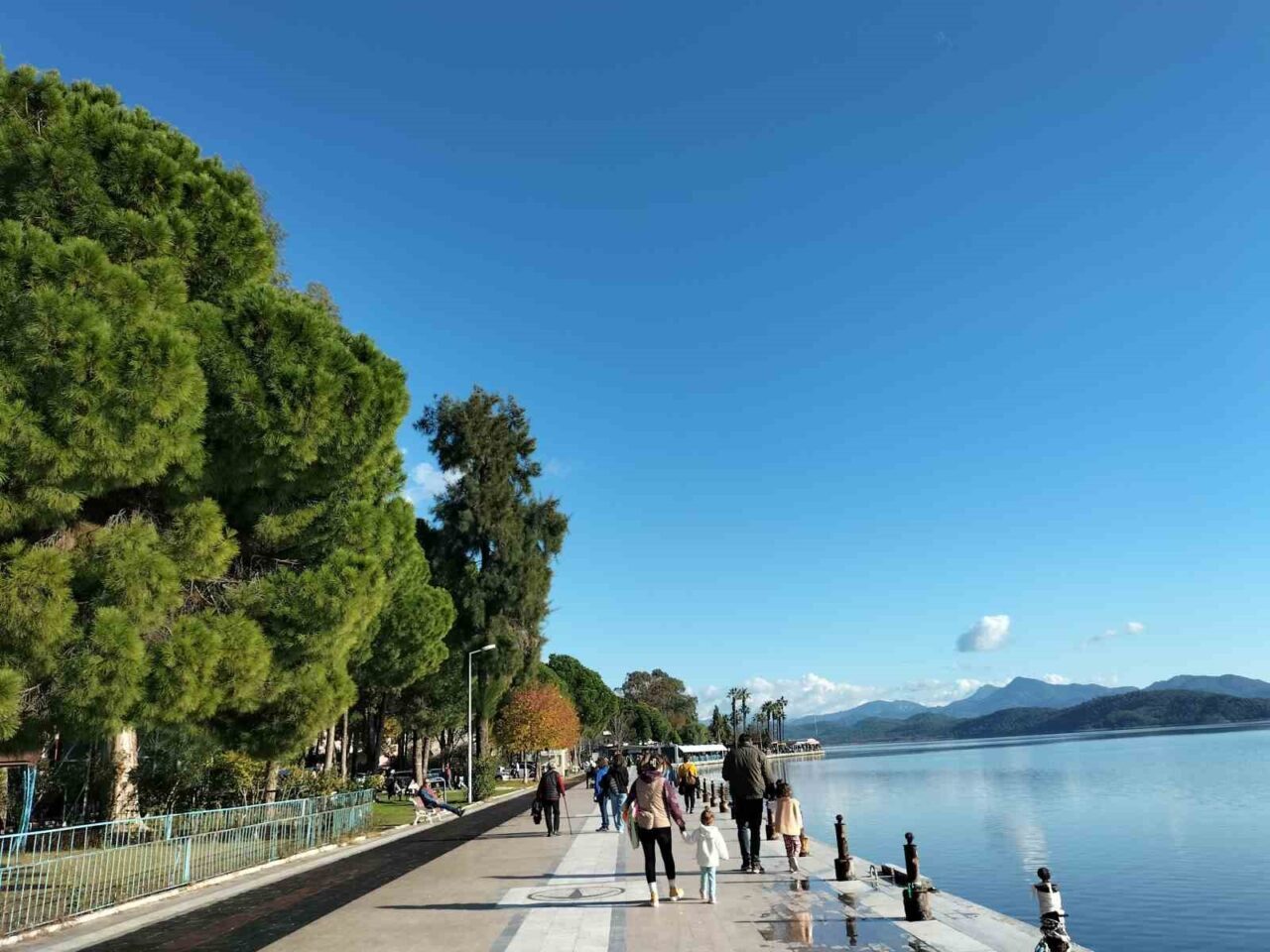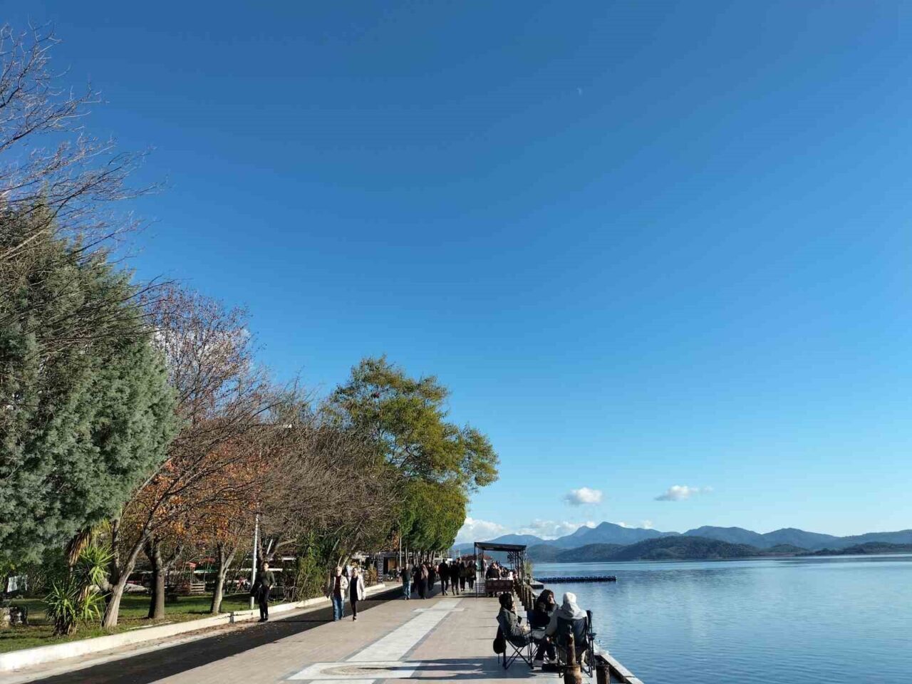 Köyceğiz ilçesinde dün yağan yağmurun ardından kent genelinde güneşli bir hava hakim oldu. Hafta sonu olması nedeniyle güneşi gören vatandaşlar Atatürk Kordonu’na akın etti. Hava sıcaklığının 20-22 derece seyrettiği Köyceğiz’de Sandras Dağı’nda kar keyfi yapılırken göl kenarında bahar havası yaşanması vatandaşlara aynı günde farklı mevsimleri yaşama fırsatı sundu. Ilık havanın etkisiyle Atatürk Kordonu’na gelen vatandaşların bir kısmı yürüyüş yaparken, bir kısmı piknik alanlarını doldurdu. Göle oltasını atıp bekleyenlerin de oldukça fazla olduğu ilçede göl kenarındaki işletmelerde ise kalabalıktan payını aldı.