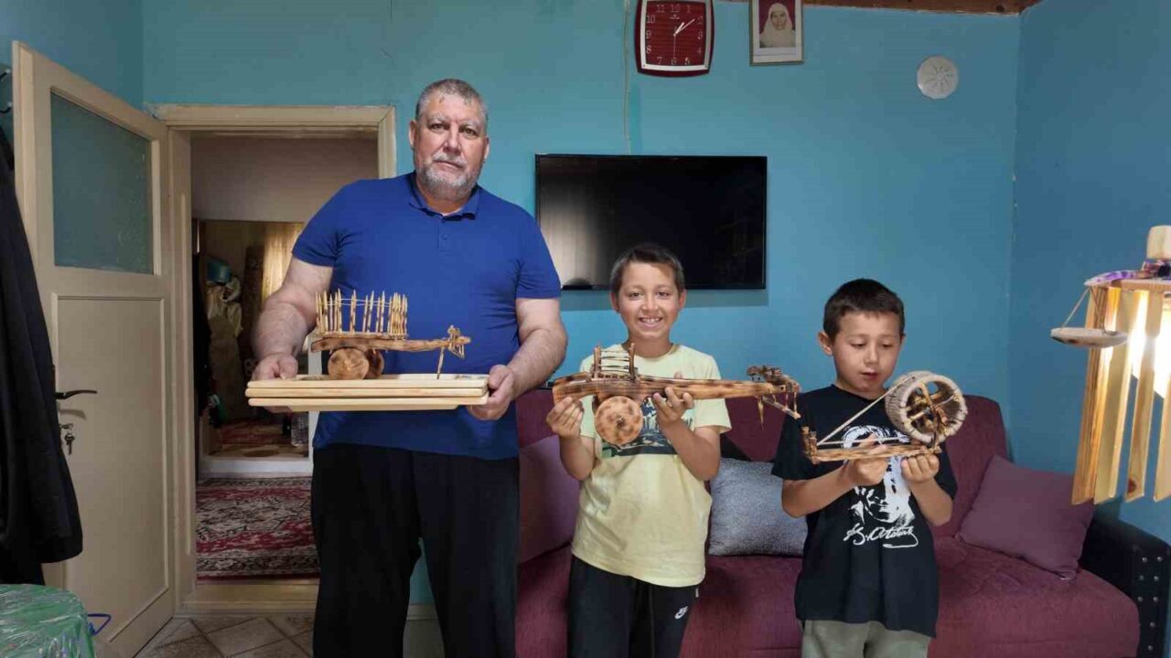 Kütahya’nın Gediz ilçesinde yaşayan 58 yaşındaki Yusuf Kartal, evinin bir odasını atölyeye çevirerek tamamı el işçiliğiyle hazırladığı ahşap dekoratif ürünler üretiyor. Geleneksel kağnı modellerinden masa süslerine, otantik duvar objelerinden minyatür ahşap yapılara kadar birçok ürünü kendi tasarlayıp üreten Kartal, doğal malzeme kullanımı ve detaylı işçiliğiyle dikkat çekiyor.