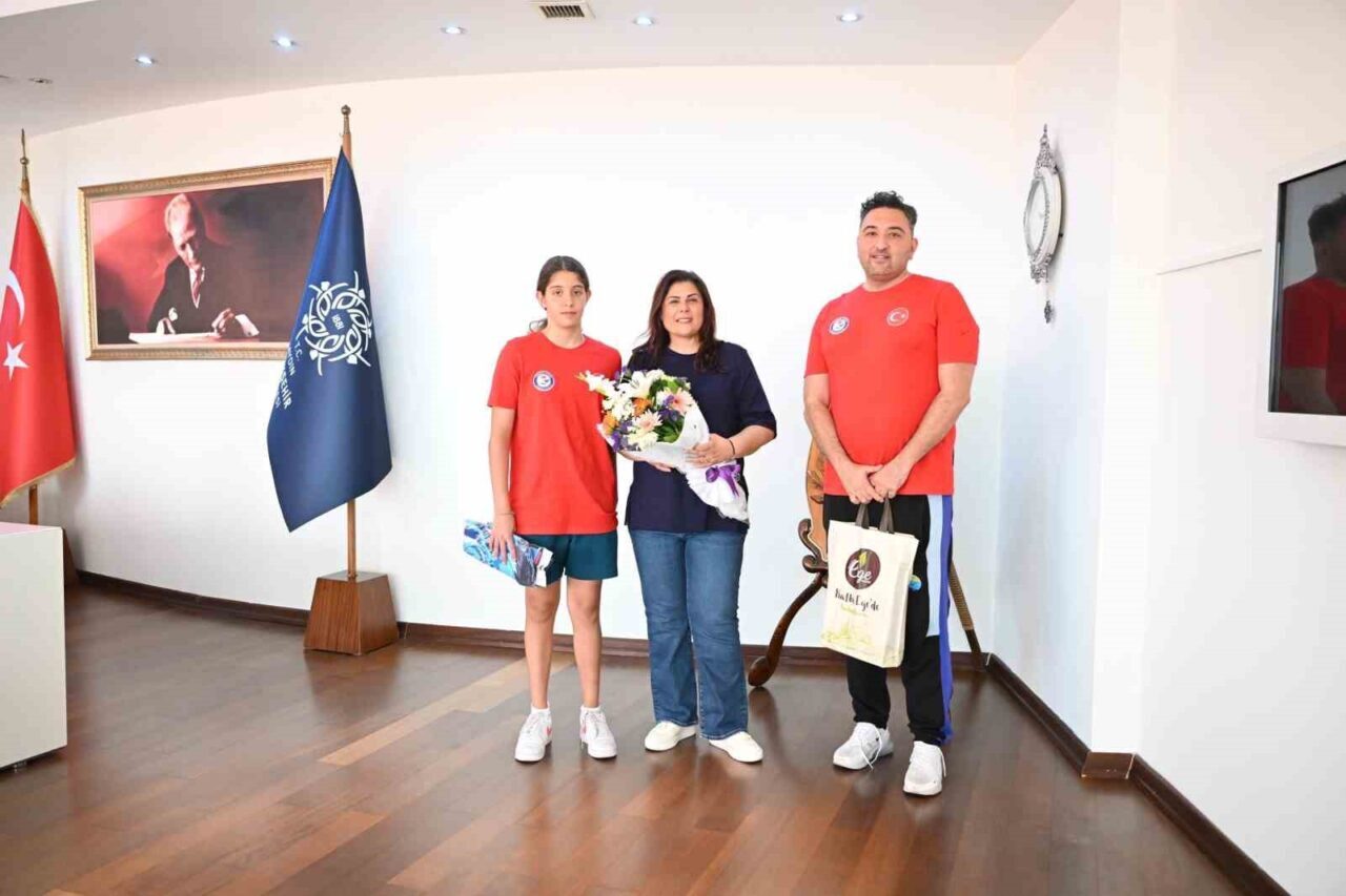 Aydın Büyükşehir Belediyesi Atatürk Spor Kompleksi’nde gerçekleştirilen eğitimler ile milli takıma giren genç yüzücü Nisan Ada Balkan, Büyükşehir Belediye Başkanı Özlem Çerçioğlu’nu makamında ziyaret etti.