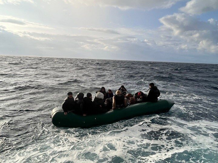 Aydın’dan lastik bot veya can salları ile Yunanistan’a geçmeye çalışan düzensiz göçmenlere yönelik çalışmalar aralıksız devam ediyor. Bu çerçevede Yunan sahil güvenliği tarafından geri itilerek ölüme terk edilen düzensiz göçmenler in kurtarılmasına yönelik çalışmalar da hız kesmiyor. Edinilen bilgiye göre Sahil Güvenlik ekipleri, Didim ilçesi açıklarında lastik bot içerisinde bir grup düzensiz göçmen olduğunu tespit etti. Bunun üzerine sahil güvenlik botu ile bölgeye hareket eden ekipler, Yunanistan unsurlarınca Türk karasularına geri itilen lastik bot içerisindeki 12’si çocuk 27 düzensiz göçmeni kurtardı. Kurtarılan düzensiz göçmenler gerekli sağlık kontrollerinin ardından Düzensiz Göçmen Ön Kabul ve Sevk Merkezi’ne (GÖKSEM) gönderildi.
