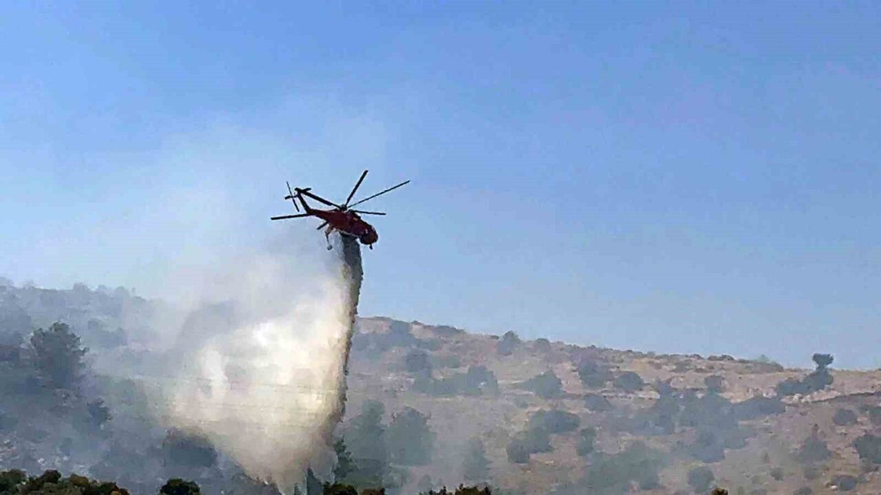 Muğla’nın Bodrum ilçesi Türkbükü Mahallesinde makilik alanda başlayan yangına ekiplerin havadan ve karadan müdahalesi devam ediyor. Yangının bir inşaatta yapılan elektrik kaynağından kaynaklandığı ileri sürüldü.