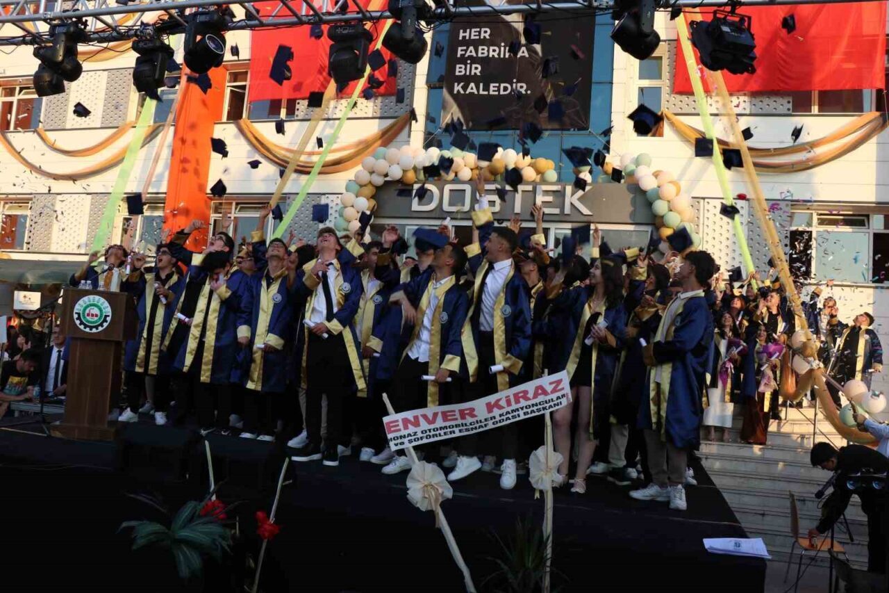 DOSTEK Koleji’nde elektrik-elektronik teknolojileri, moda tasarım, tekstil teknolojileri, endüstriyel otomasyon teknolojileri ve makine ve tasarım teknolojisi alanlarında eğitimini tamamlayan 230 öğrenci mezuniyet heyecanı yaşadı.