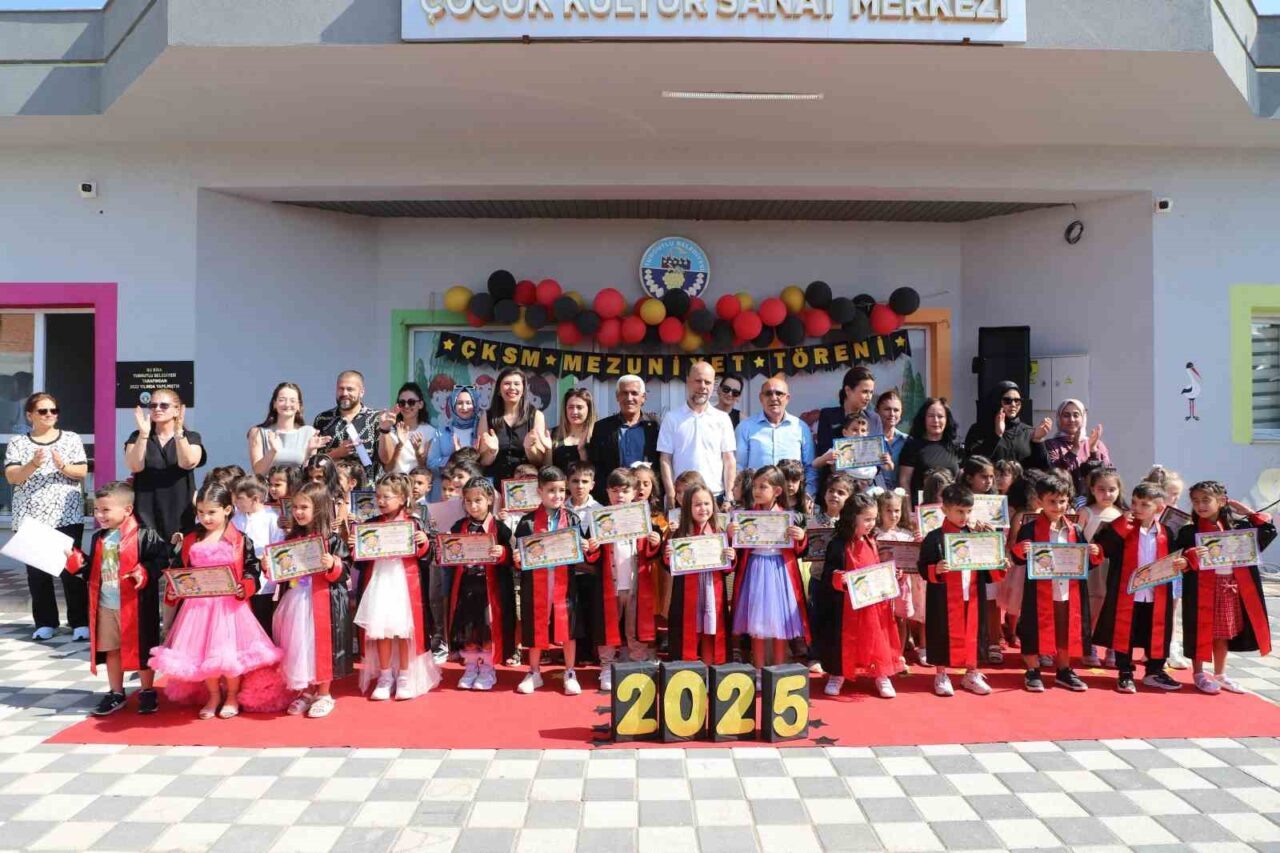 Turgutlu Belediyesinin eğitimde fırsat eşitliğini sağlamak amacıyla kente kazandırdığı ve sunduğu imkanlarla Türkiye’de ilke imza attığı Çocuk Kültür Sanat Merkezleri minikleri mezun etti. Merkezlerde düzenlenen ve çeşitli gösterilerin de yer aldığı törenlere katılan Belediye Başkan Vekili Cemal Aydın, Başkan Yardımcısı Evren Erbaş Ser, Basın Yayın ve Halkla İlişkiler Müdürlüğü Sorumlusu Emrah Kanık, çocukların ve ailelerin mezuniyet mutluluğuna ortak oldu.