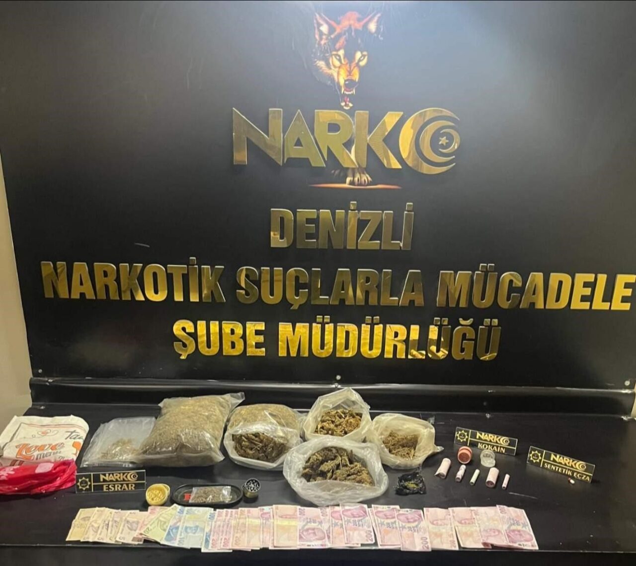 Denizli Emniyet Müdürlüğüne bağlı Narkotik Suçlarla Mücadele Şube Müdürlüğü ekipleri uyuşturucu madde ticareti yaptığı belirlenen bir zehir tacirine yönelik 18 Haziran Çarşamba günü operasyon düzenledi. Operasyonda zehir taciri kıskıvrak yakalanırken, şüpheli şahsın ikametinde ve üzerinde arama yapıldı. Yapılan aramalar kapsamında 8 parça halinde 2 kilo 325 gram esrar, 1 adet sentetik ecza hap, 2 adet esrar öğütücü ve uyuşturucu madde ticaretinden elde edildiği değerlendirilen 4 bin 470 TL ve kokain bulaşıklı maddeler ele geçirildi. Emniyetteki ifadesinin ardından adliyeye sevk edilen şüpheli, çıkarıldığı mahkemece tutuklanarak cezaevine gönderildi.