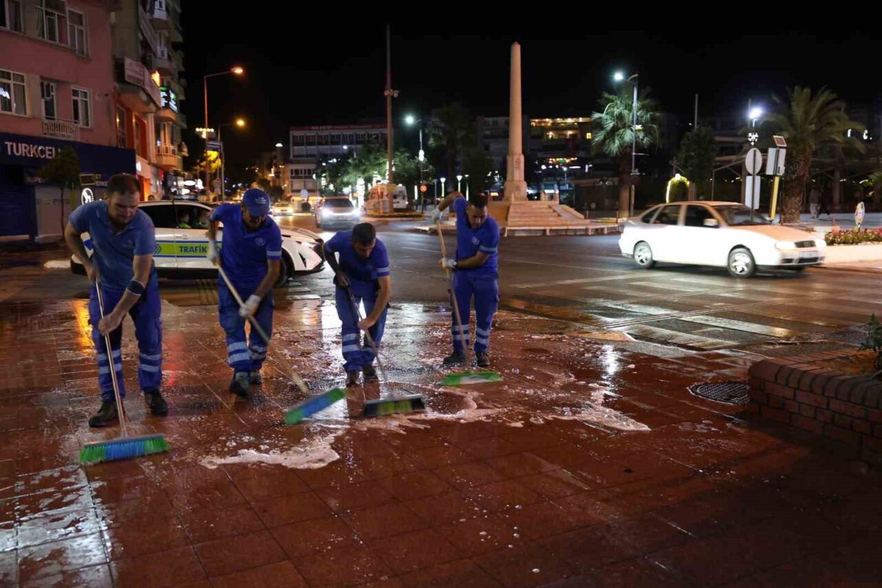 Aydın Büyükşehir Belediyesi ekipleri rutin temizlik çalışmalarının yanı sıra caddeler, bulvarlar ve kent mobilyalarını titizlikle temizliyor. Aydın Büyükşehir Belediye Başkanı Özlem Çerçioğlu, vatandaşların her sabah temiz bir kentte uyanması için çalışmaların devam edeceğini belirtti ve “Sorumluluk alanlarımızın her noktasında titizlikle çalışıyoruz. Ekiplerimiz çalışmalarını mesai mefhumu gözetmeksizin sürdürüyor. Pırıl pırıl bir Aydın için gece gündüz demeden çalışıyoruz. Bizler tüm ekiplerimizle üzerimize düşen sorumluluğu yerine getirirken vatandaşlarımızı da çevreye karşı duyarlı olmaya çağırıyoruz” ifadelerini kullandı.