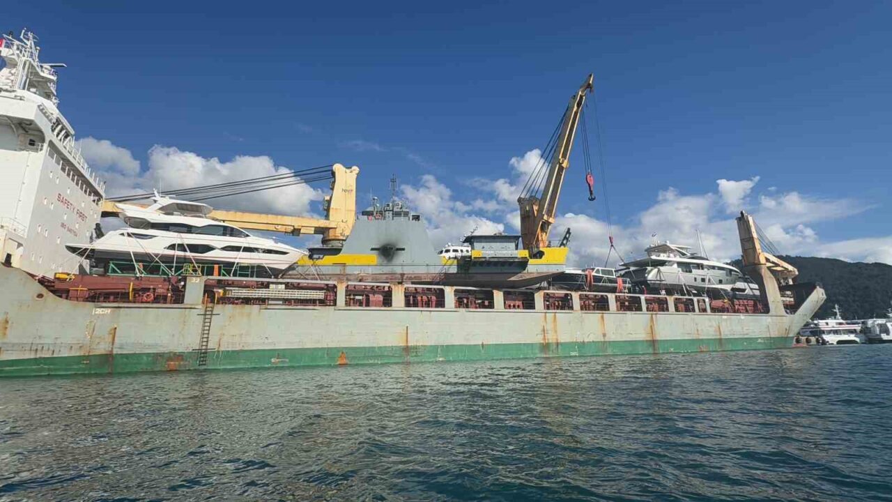 Milyonluk motor yatlar, yük gemileri ile Marmaris’e getirildi