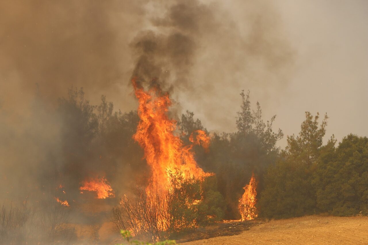 Manisa’nın Kula ilçesinde ormanlık alanda yangın çıktı. Rüzgarın da etkisiyle hızla geniş alana yayılan yangına ekiplerin havadan ve karadan müdahalesi sürüyor.