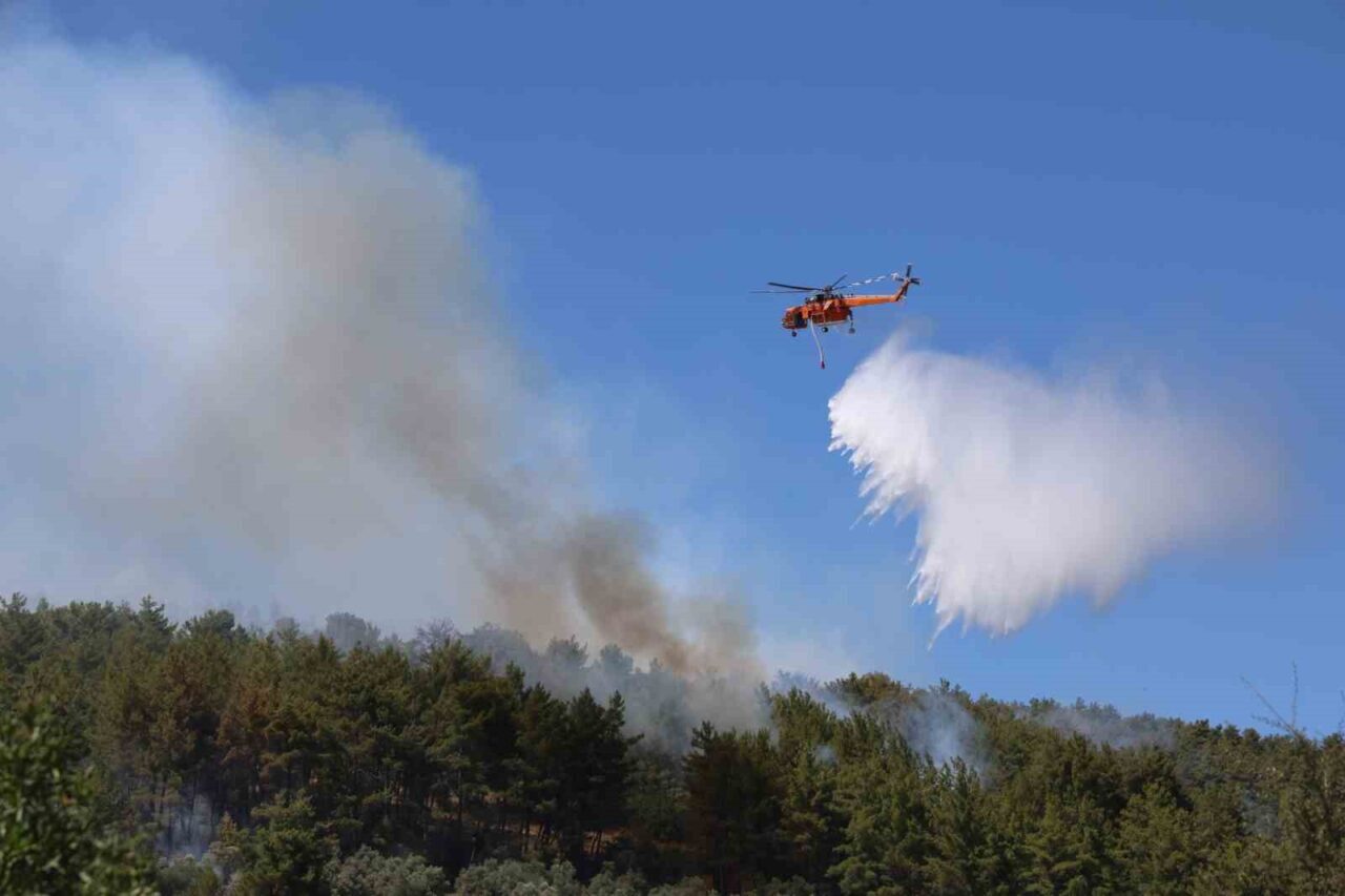 Muğla’nın Menteşe ilçesindeki ormanlık alanda başlayan yangını söndürme çalışmaları havadan ve karadan müdahale ile devam ediyor.