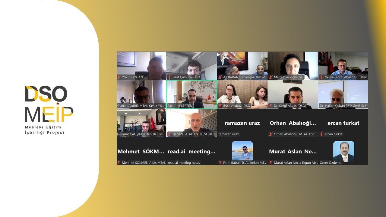Denizli Sanayi Odası ve Denizli İl Milli Eğitim Müdürlüğü koordinasyonunda yürütülen DSO MEİP kapsamında ilk Protokol Yürütme Kurulu (PYK) Toplantısı, Denizli İl Milli Eğitim Müdürü Dr. Emre Çalışkan, DSO Başkan Yardımcısı Mehmet Serter ve protokolde yer alan 9 mesleki ve teknik Anadolu liselerinden okul yöneticilerinin yanı sıra DSO ve İstanbul Sanayi Odası profesyonellerinin katılımıyla yapıldı.