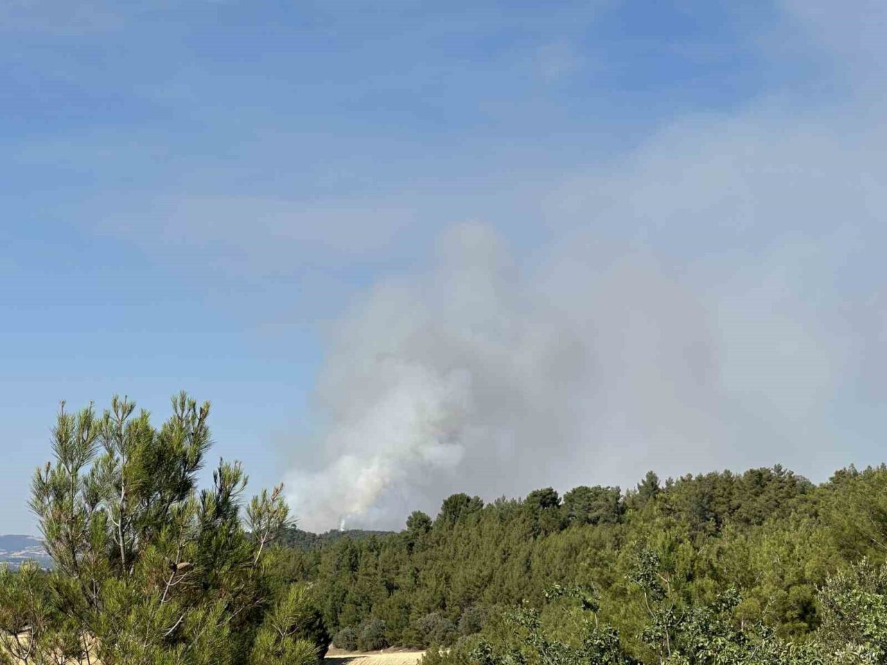 Uşak’ta tarım arazisinde başlayan yangın, ormanlık alana sıçradı. Ekiplerin müdahalesi havadan ve karadan devam ediyor.