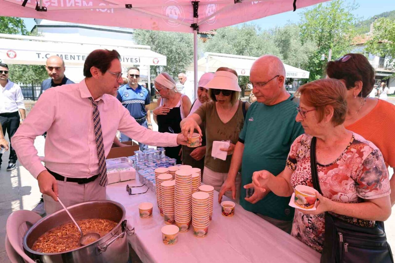 Menteşe Belediyesi, Muharrem ayı dolayısıyla Kurşunlu Camii Meydanı’nda vatandaşlara aşure ikramında bulundu. Geleneksel hale gelen etkinlikte, vatandaşlara birlik ve beraberliğin simgesi olan aşure dağıtıldı.