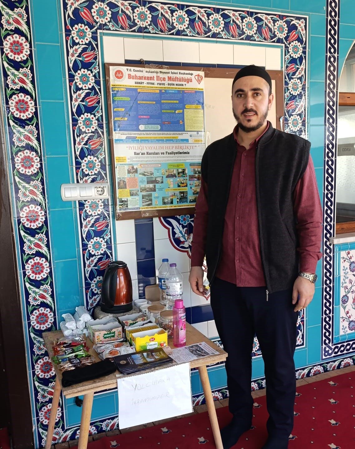 Aydın’ın Buharkent ilçesinde Kadı Hüseyin Ergünhan Camii İmamı Uğur Tunç, oluşturduğu ikram köşesi ile vatandaşların takdirini topladı. Namaz kılmak için camiye gelenler ve özellikle yolcuların hem dinlenip hem de cayını ve kahvesini yudumlayabildiği camide herşey gönüllüerin katkısı ile oluyor. Yolcular için çorap ikramının bile olduğu ikram köşesi görenleri şaşırtıyor.