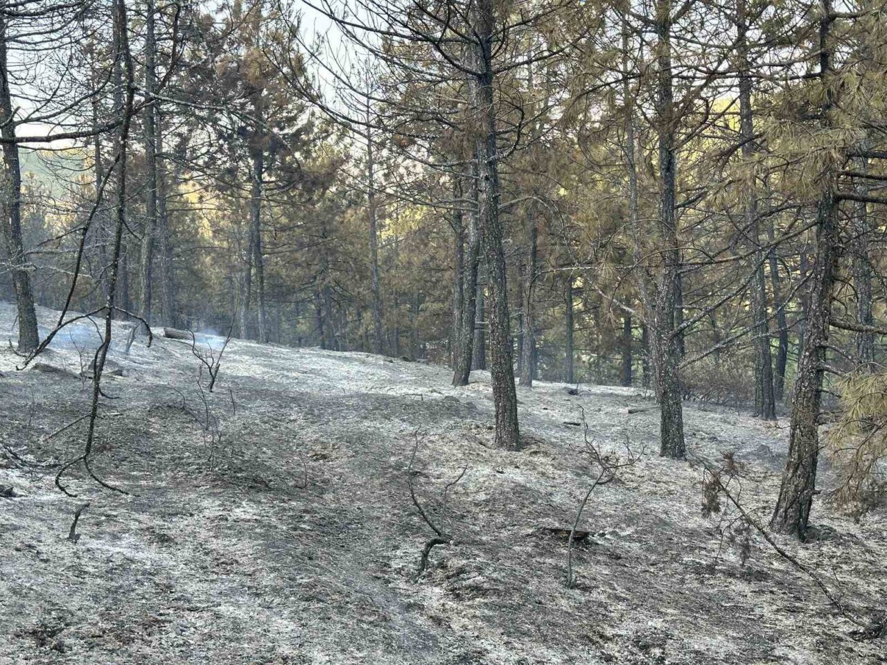 Uşak’taki orman yangını ekiplerin müdahalesi sonucu kısmen kontrol altına alınırken, soğutma çalışmaları devam ediyor.