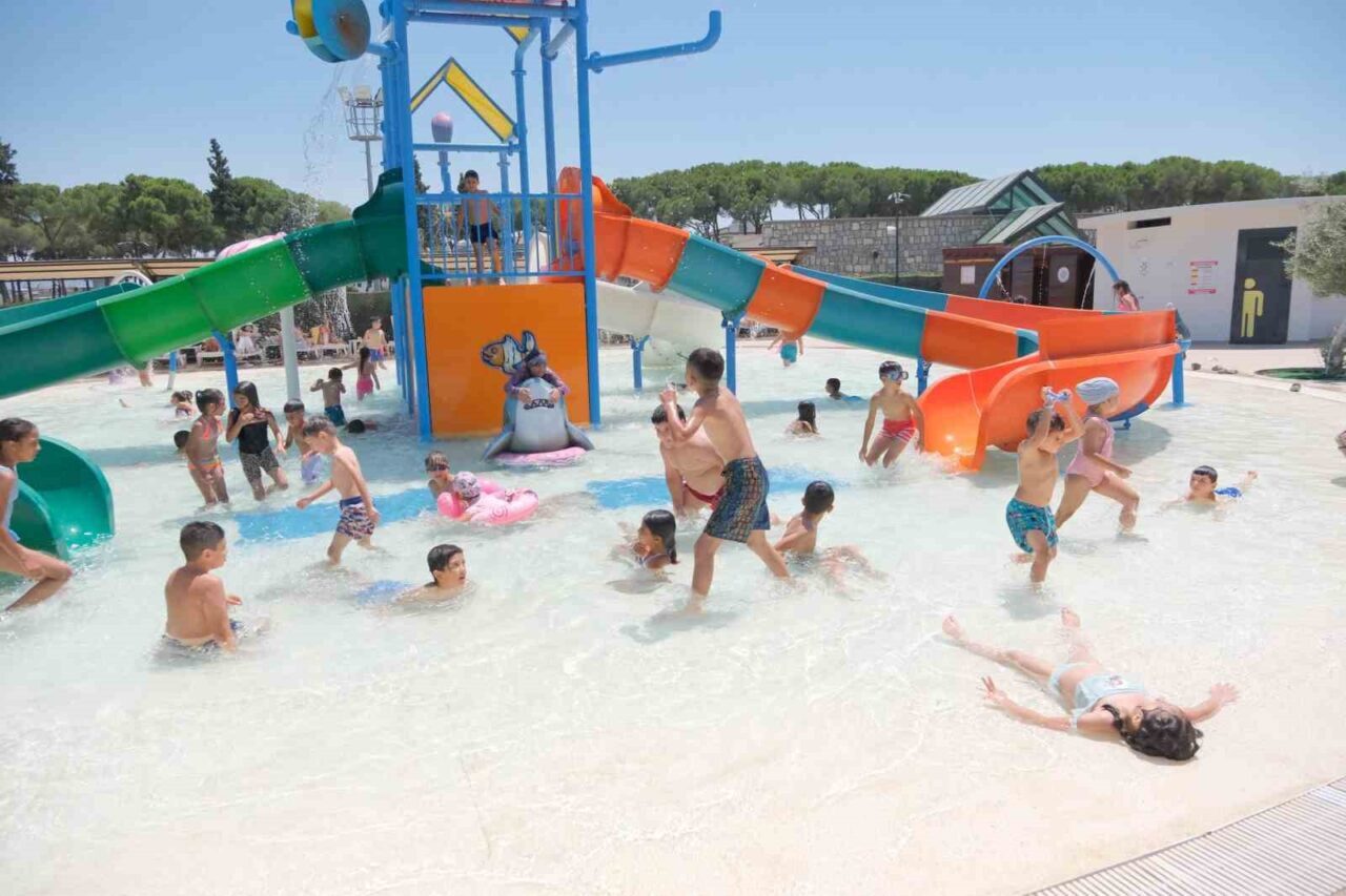 Parkın içinde yer alan aquapark, sıcak havalarda serinlemek isteyen çocuklar için eğlencenin adresi haline geldi.