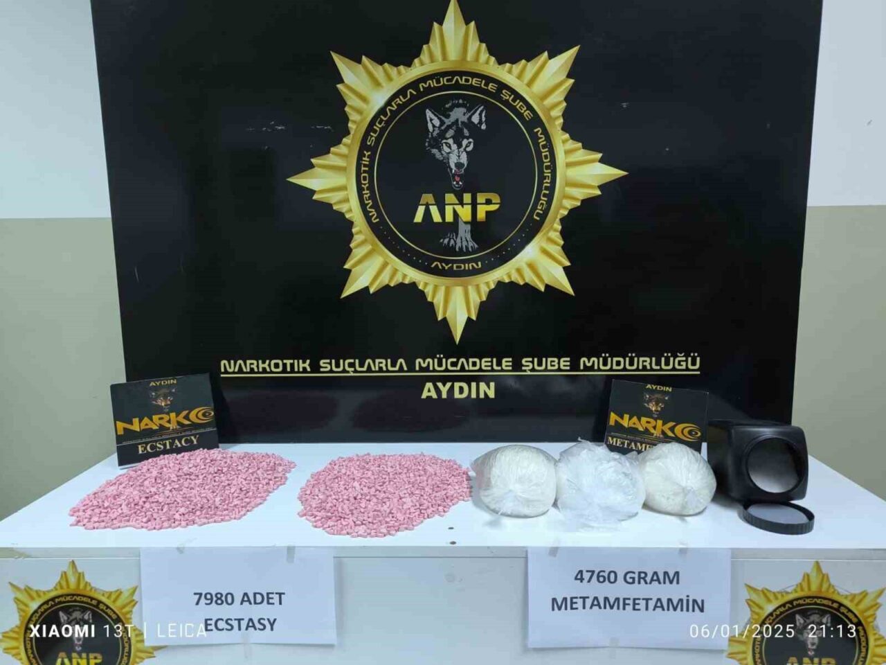 Aydın’ın Efeler ilçesinde narkotik polisleri tarafından gerçekleştirilen operasyon kapsamında 7 bin 980 adet ectasy hap ve 4 kilo 760 gram metamfetamin uyuşturucu madde ele geçirildi. Gözaltına alınan 2 kadın şüpheliden 1’i çıkartıldığı adli makamlarca tutuklanarak cezaevine gönderilirken, diğeri ise adli kontrol şartı ile serbest bırakıldı.